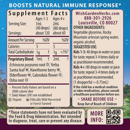 Herbal Immune Support Supplement for Kids - WishGarden Herbs Kick-It Immune Formula with Echinacea, OSHA, Elder, 4oz