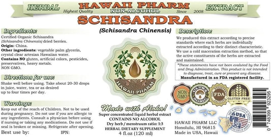 Organic Schisandra Liquid Extract - Alcohol-Free, USA-Made Herbal Supplement - 2 fl.oz Glycerite by Hawaii Pharm