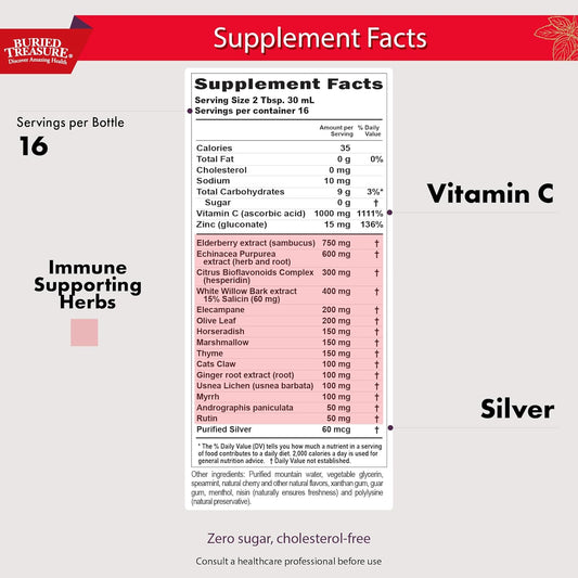 16 oz Buried Treasure ACF Extra Strength Immune Support Liquid Dietary Supplement - Elderberry, Vitamin C, Zinc, Herbal Formula - 16 Servings
