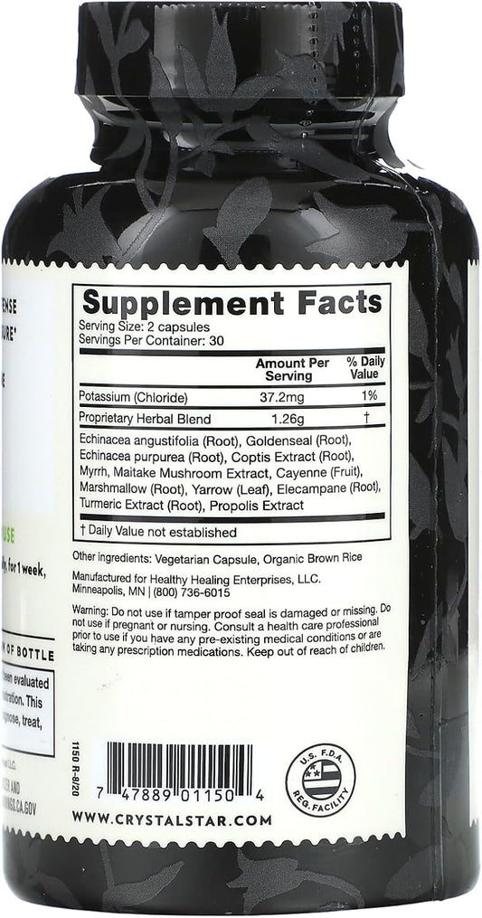 Herbal Immune Booster Supplement for Multi-System Defense - Echinacea, Goldenseal, Yarrow, Elecampane - 60 Capsules