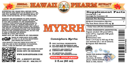 Organic Myrrh Liquid Extract Tincture Herbal Supplement - 2 fl. oz - Hawaii Pharm USA Made