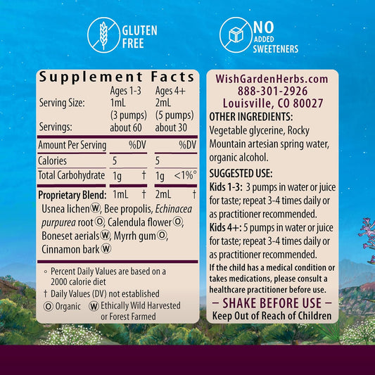 WishGarden Herbs Kick-It Biotic Immune Hero for Kids - Herbal Formula with Usnea Lichen & Echinacea, 2oz