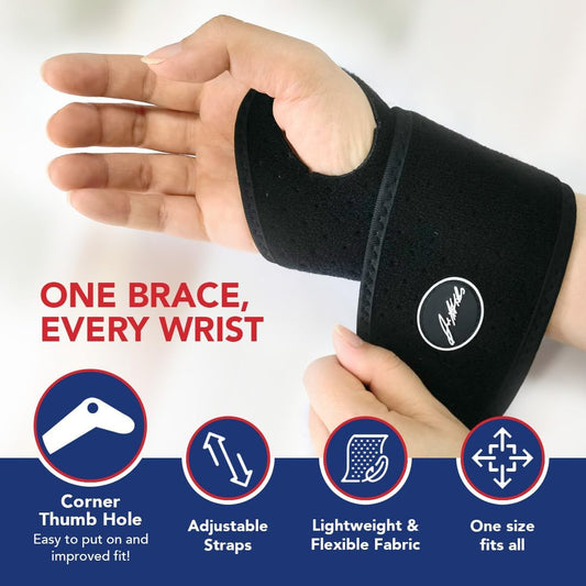 Adjustable Wrist Brace for Carpal Tunnel & Injuries, Doctor-Developed Compression Hand Brace, Easy to Wear, Fits Both Hands - Single Pack