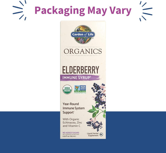 Organic Vegan Elderberry Immune Syrup for Kids & Adults - 6.59 fl oz - Sambucus, Echinacea, Zinc, Vitamin C - Sugar-Free - Gluten Free Herbal Supplement by Garden of Life Organics