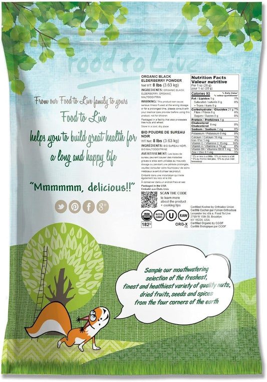 Organic Black Elderberry Powder 8 lbs - Non-GMO Raw Dried Berries for Baking, Smoothies, Yogurts - Vegan Bulk Option