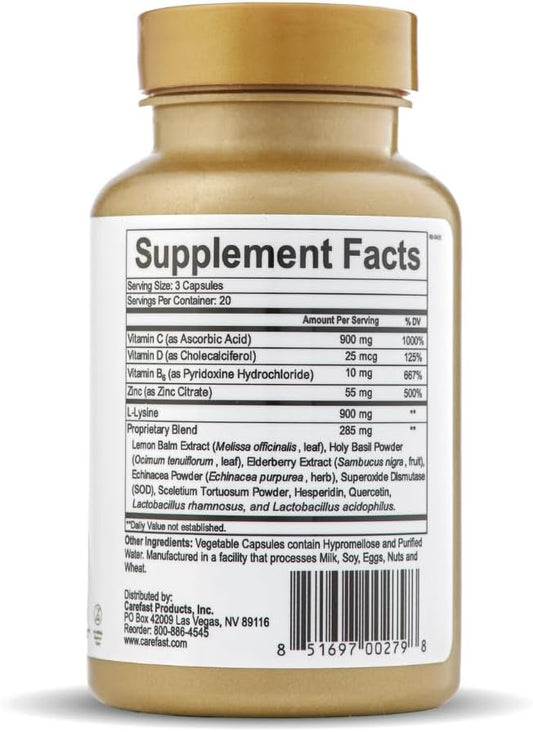 60 Natural Vegan Capsules Immune Support Supplement with Vitamins C, B6, D, Elderberry Extract, and Zinc - Boost Immunity for Men, Women, and Seniors