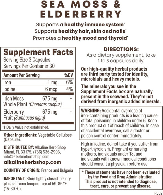 Alkaline Herb Store Sea Moss and Elderberry Capsules - 90 Supplements