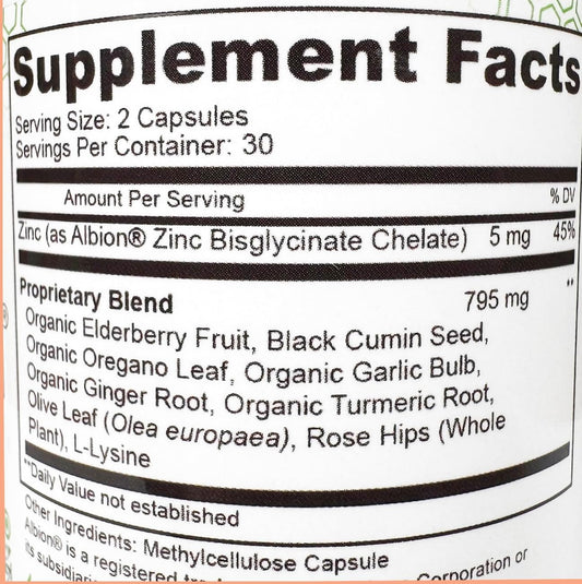 Organic Elderberry Immune Support Supplement - 800mg Capsules for Optimal Immune Health & Wellness