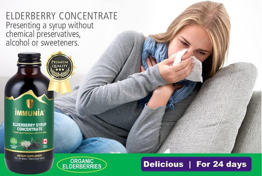 3-Pack of Immunia Elderberry Syrup with Elderflower, Thyme, Peppermint - Immune System Support, No Added Sugar, 24-Day Supply/Bottle