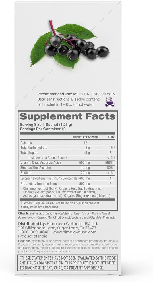 Elderberry Immune Support Mix with Zinc, Vitamin C, and Holy Basil - Caffeine Free Drink Supplement, 10 Packets, Gluten Free