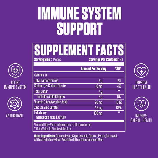 Immune Support Gummies with Elderberry, Zinc, and Vitamin C - 60 Count