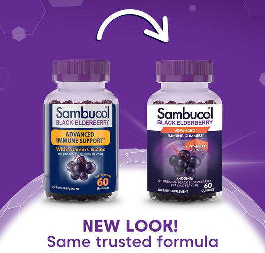 Sambucol Elderberry Gummies with Vitamin C & Zinc - Immune Support Supplement with High Antioxidants - Gluten Free, Vegan - 60 Gummies, 2 Pack