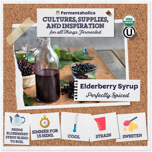 Organic Dried Elderberry Syrup Making Kit with Spice Blend, Honey, and Cheese Cloth - DIY Elderberry Syrup Kit