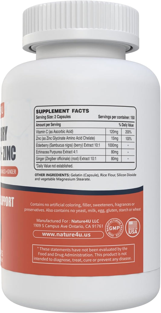 Elderberry Immune Support Supplement with Antioxidants, Vitamin C, Zinc - 300 Vegan Capsules