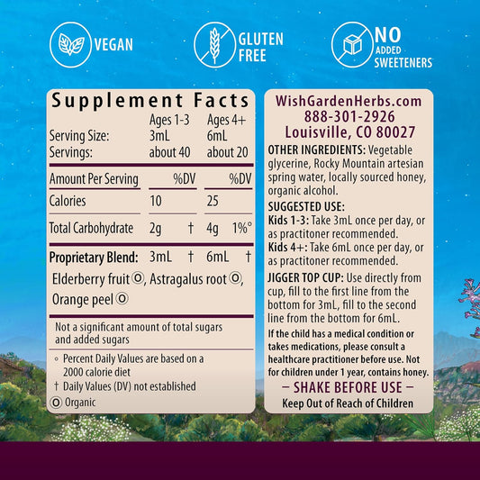 Organic Children's Elderberry Syrup with Black Elderberry, Astragalus, Orange Peel & Honey - Daily Immune Booster for Kids, No Added Sugar - 4oz