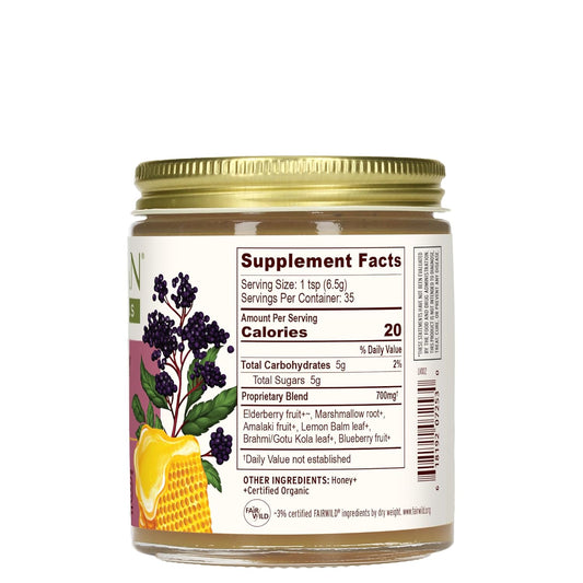 Organic Elderberry Honey with Sambucus, Amla & Marshmallow for Immune Support - 8.25 Oz - Raw & Unfiltered Honey - Sustainably Sourced & Pollinator-Friendly
