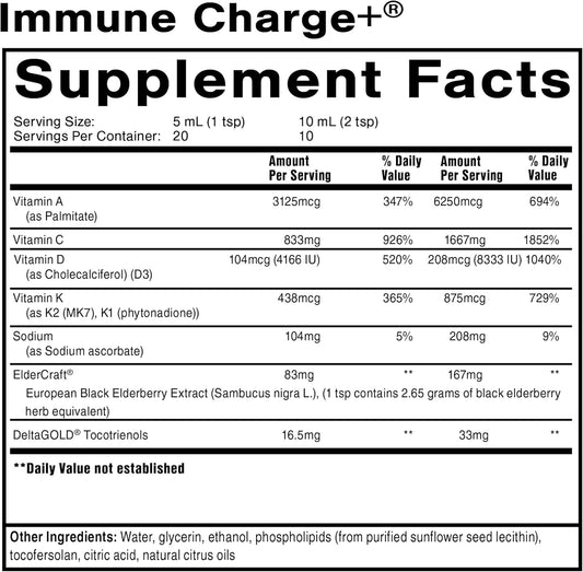 Quicksilver Scientific Immune Charge+ - Elderberry with High Levels of Vitamin D3, A, C, E, K1 & K2 for Immune Health and Lung Support - 100ml