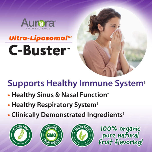 Vida Lifescience Aurora Nutrascience Ultra Liposomal C-Buster Immune System Support with Vitamin C, D, Zinc, Elderberry, Pelargonium, K & Ginseng - 30 Packets