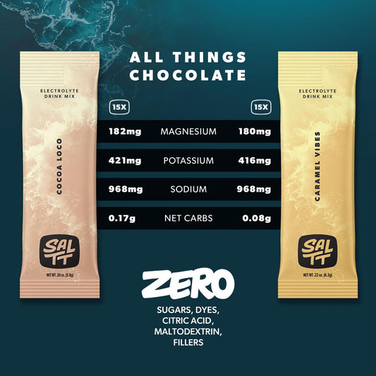 Keto Chow SALTT Electrolytes Powder Drink Mix Variety Pack - 15 Hydration Packets with Magnesium, Potassium, Sodium, Trace Minerals - Sugar & Gluten Free