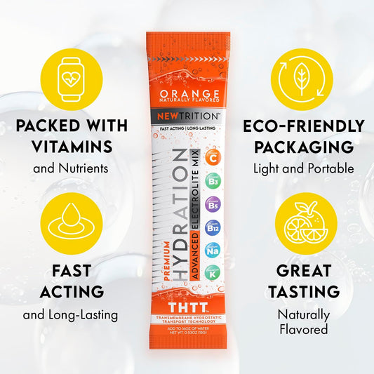 Natural Orange Flavored Electrolyte Hydration Powder Packets - 12 Servings, Fast-Acting Hydrate with Vitamins C & D for Water