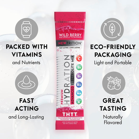 Coldest Water Electrolyte Powder Packets - Non GMO, No Artificial Sugar - 20 Sticks Triple Berry Flavor