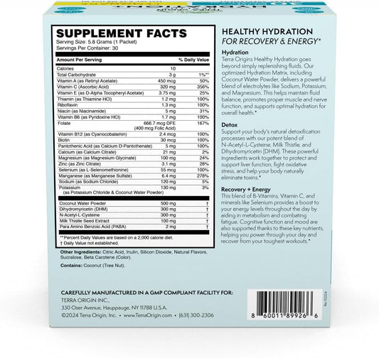 TERRA ORIGIN Electrolyte Powder with B-Vitamins for Hydration, Energy, and Recovery - Lemonade Flavor, 30 Servings