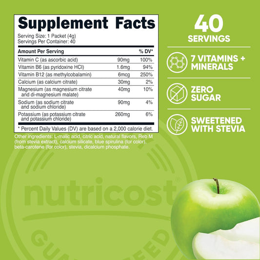40 Stickpacks of Nutricost Green Apple Flavored Electrolytes Complex for Optimal Hydration