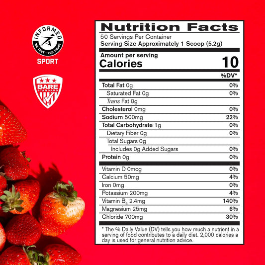 BPN Electrolytes Hydration Drink Mix - Sugar Free Powder with 500mg Sodium - Strawberry Flavor, 50 Servings