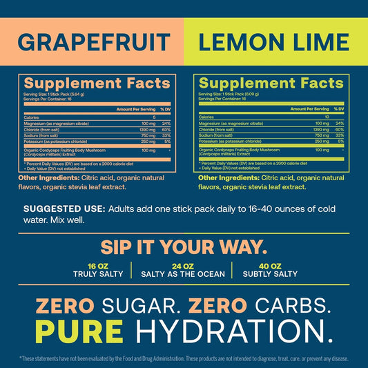 ElectroMag Electrolyte Powder - Grapefruit & Lemon Lime Flavor Packets - 32 Servings - Zero Sugar & Carbs - Non-GMO Formula