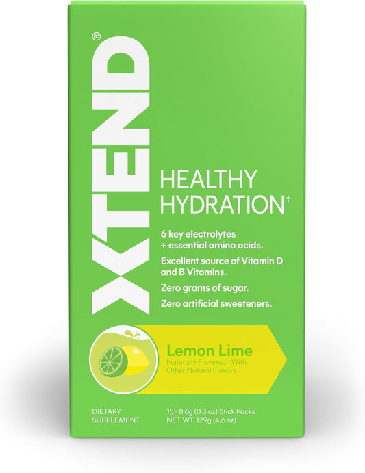 Xtend Healthy Hydration Lemon Lime Powder Packets - Zero Sugar Drink Mix with 6 Electrolytes & Amino Acids - NSF Certified - 15 Sticks