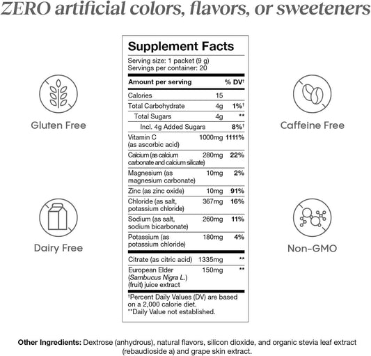 Hydralyte Elderberry Electrolyte Powder Packets - Low Sugar Rehydration with Vitamin C - Immunity Boosting Formula (20 Count)