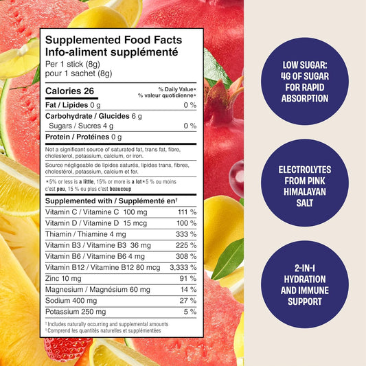 Hydration Powder Packets with Electrolytes - Watermelon Flavor, 40 Pack - Sugar-Free, Calorie-Free, Gluten-Free - USA-Made