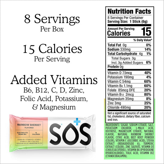 SOS Hydration Electrolyte Powder Packets - 8 Stick Packets, Rainbow Sherbert Flavor