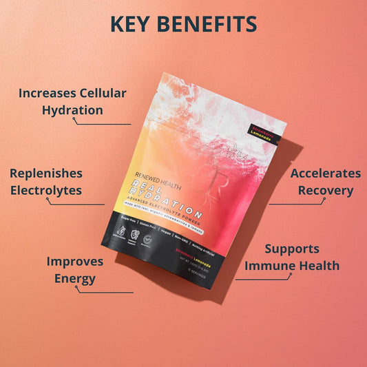 Renewed Health Real Hydration Electrolyte Powder with Organic Fruits & Pink Salt - Vegan & Sugar-Free - Peach Mango Flavor - Immune & Energy Support