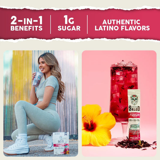 Salud Salud Hibiscus Jamaican Agua Fresca Drink Mix with Elderberry - 2-in-1 Hydration Packets and Immunity Electrolytes Powder - Non-GMO, Vegan, Gluten-Free, Low Calorie, Dairy & Soy Free (15 Servings)