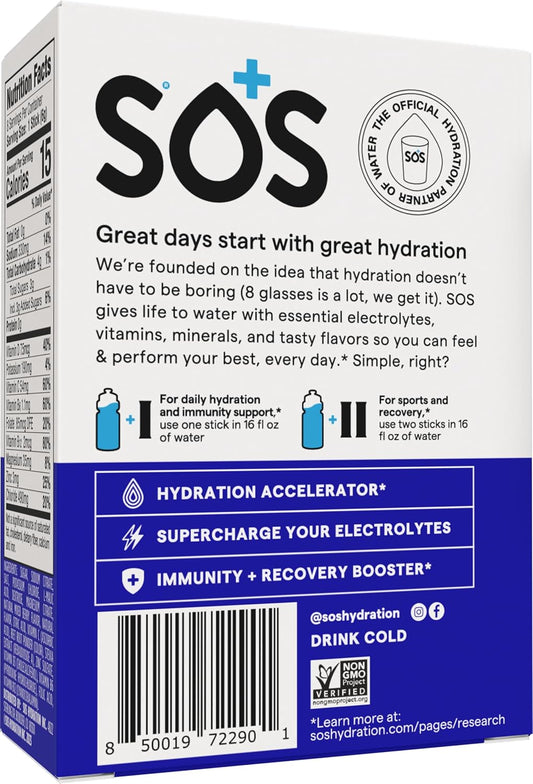 Hydrate & Energize with SOS Electrolyte Powder Drink Mix; 24 Servings, Low Sugar, Essential Vitamins, Daily Hydration