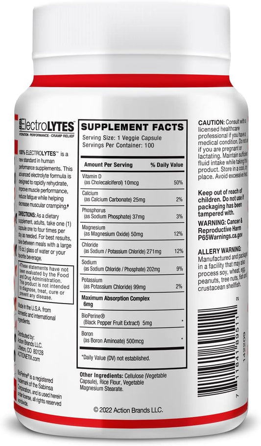 Hydration Tablets: Electrolyte Replacement Capsules - Stimulant Free Rehydration Pills (100ct)