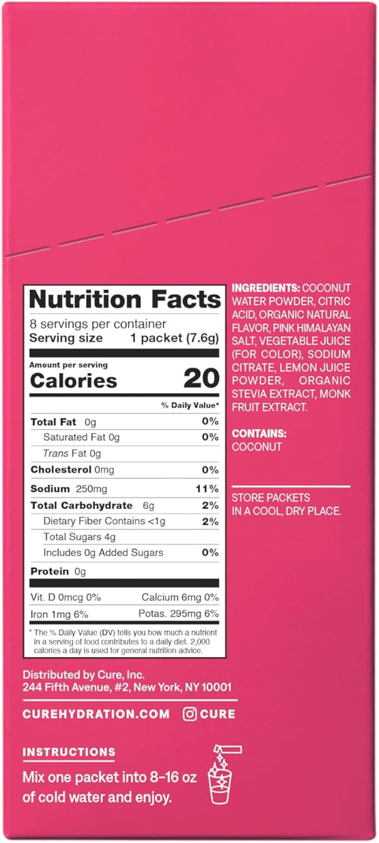 Plant-Based Electrolyte Drink Mix for Dehydration Relief | Coconut Water Powder | Non-GMO Vegan | Tropical Punch Flavor - Box of 8 Packets