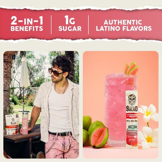 Salud Salud Guava Flavored 2-in-1 Hydration Packets with Immunity Electrolytes - Elderberry, Dairy & Soy Free, Vegan, Non-GMO, Gluten Free, Low Calorie Drink Mix (15 Servings)
