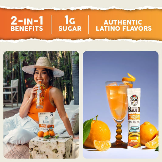 Salud Salud Mandarin Hydration Packets with Immunity Electrolytes Powder - Agua Fresca Drink Mix, Elderberry, 15 Servings