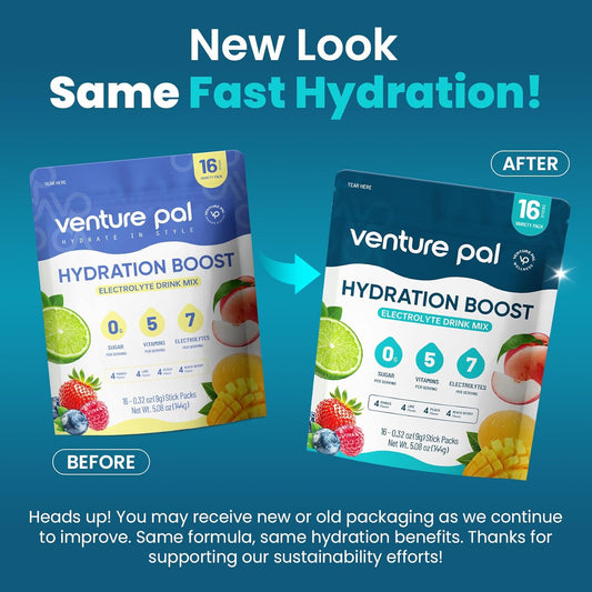 Venture Pal Sugar Free Electrolyte Powder Packets - Hydration Drink Mix with Vitamins & Electrolytes - Keto Friendly & Non-GMO - 16 Sticks