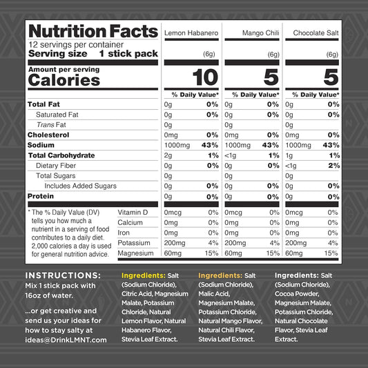 LMNT Keto Electrolyte Powder Packets - Paleo Hydration Drink Mix - No Sugar, No Artificial Ingredients - Fiesta Pack - 12 Stick Packs