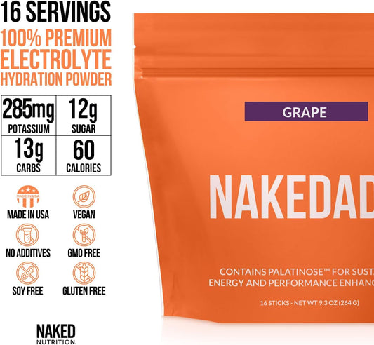 Naked Nutrition Nakedade Grape Electrolyte Powder - Performance-Enhancing Sports Drink Sticks - Non-GMO, Gluten-Free