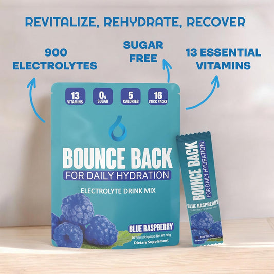 Organic Keto-Friendly Electrolyte Packets with 13 Essential Vitamins - Zero Sugar, Low Calorie Hydration (Blue Raspberry, 16 Pack)