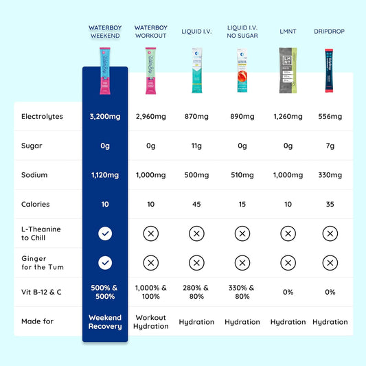 Waterboy Weekend Recovery Electrolyte Powder Packets - 3,200mg | Ginger, L-Theanine, Vitamins | Sugar-Free, Natural, Gluten-Free | 24 Lemon Lime Drink Sticks