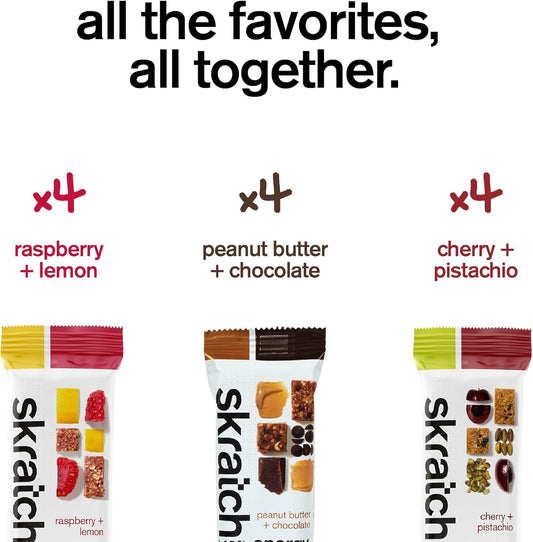 Plant-Based Skratch Labs Energy Bar Variety Pack - 12 Pack | Low Sugar, Plant Protein, Ancient Grains | Non-GMO, Gluten Free, Soy Free, Vegan, Kosher Snack