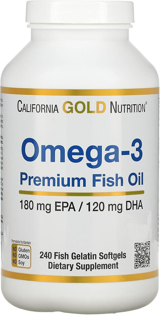2 Pack California Gold Nutrition Premium Omega-3 Fish Oil Softgels, 180mg EPA, 120mg DHA, Concentrated Triglyceride Form, 240 Gelcaps