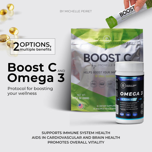 Premium Energy Boosting Fish Oil Softgels & Vitamin C Blend - Vegan & Gluten-Free (1-Month Supply)