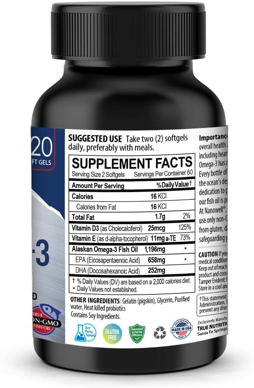 Wild Alaskan Omega-3 Fish Oil Softgels with EPA, DHA, Vitamin D3 & E - 60 Day Supply