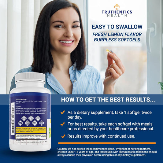 Omega-3 Fish Oil Softgels 1100 mg for Healthy Joints, Heart, Immune System - 120 Day Supply